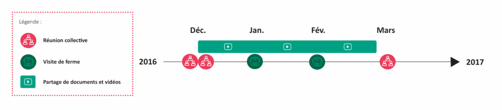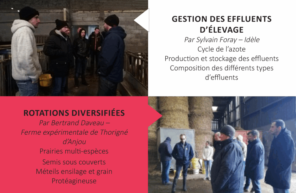 Les deux premières réunions du groupe ont eu lieu en décembre 2016. Elles ont permis aux agriculteurs, dont David Demarcy, d’échanger sur leurs visions des complémentarités cultures et élevage et d’instaurer un climat de convivialité dans le groupe. Un certain nombre de documents et de vidéos ont été partagés pendant et entre les réunions pour illustrer le sujet et bien comprendre de quoi il s’agissait.