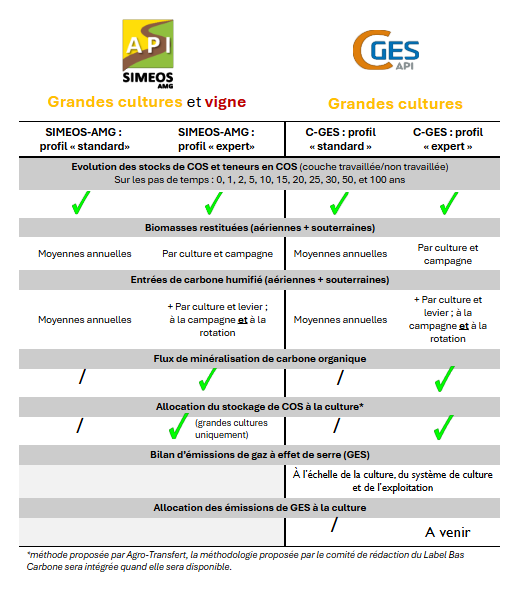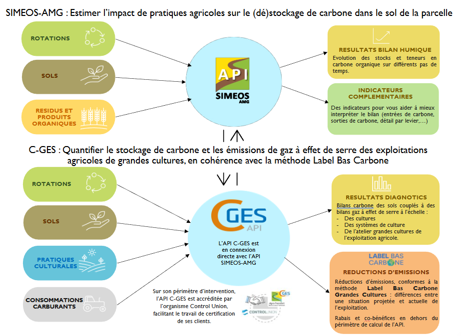 Agro-transfert vous propose deux solutions API* complémentaires, pour vos besoins d’évaluation et d’outils sur la thématique de l’agriculture bas carbone et de l’amélioration de la fertilité des sols : SIMEOS-AMG & C-GES