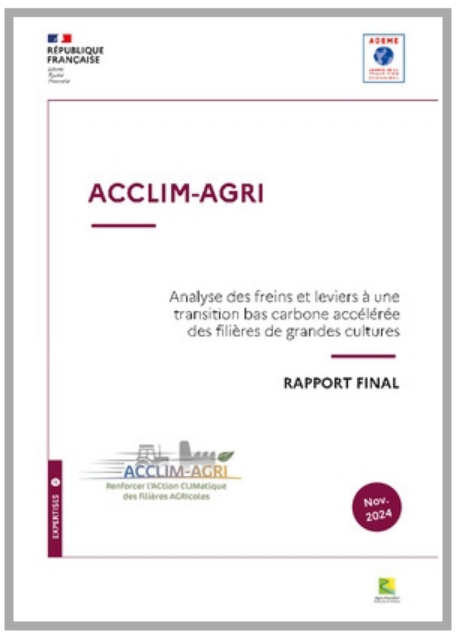 En 2024, l’étude ACCLIM-AGRI, soutenue par l’ADEME, a permis d’identifier les freins et leviers à une transition bas carbone accélérée des filières de grandes cultures :