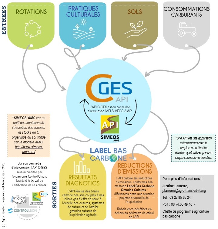 L’API C-GES permet de quantifier le stockage de carbone et les émissions de gaz à effet de serre des exploitations agricoles de grandes cultures, en cohérence avec la méthode Label Bas Carbone Grandes Cultures, à destination des éditeurs de logiciels.