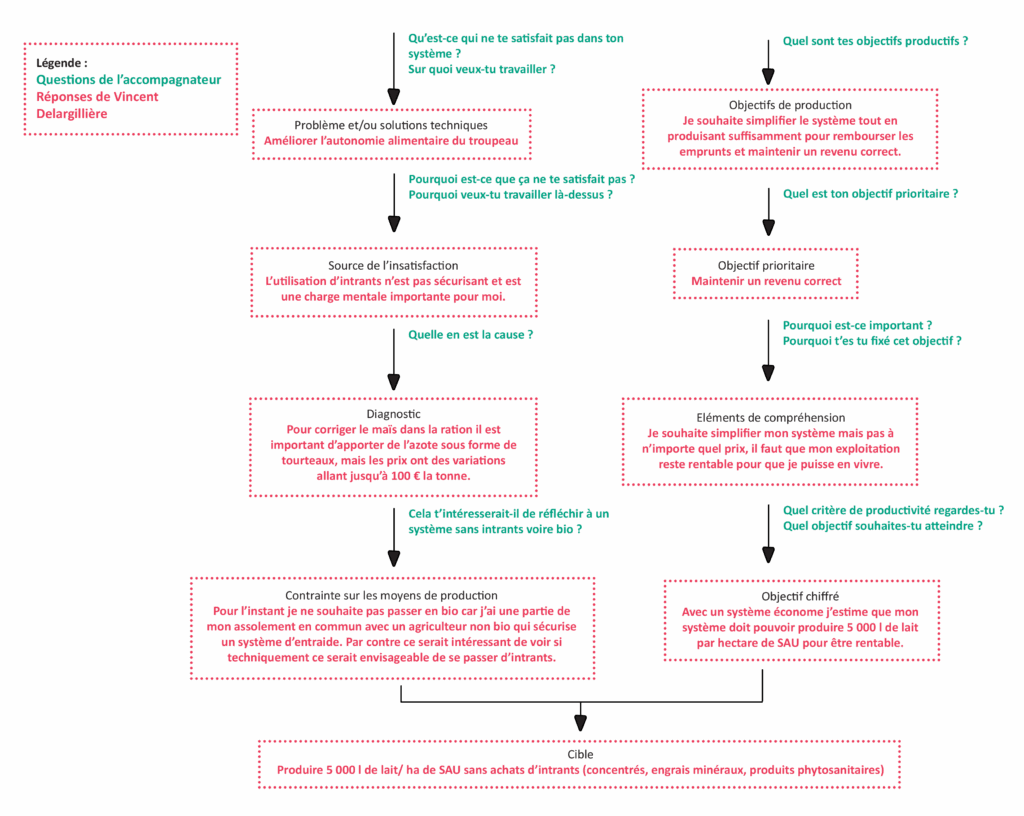 Le nouveau système semble globalement intéressant à Vincent Delargillière même s’il reste à améliorer sur différents points : le taux de renouvellement lui semble trop faible, il s’intéresse plutôt à un croisement kiwi qu’à des Jersiaises pures et la production de fourrages lui semble un peu surestimée. Par contre, l’estimation de productivité à l’hectare lui semble plus réaliste que sa cible de départ.